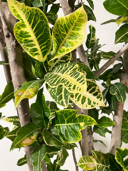 クロトンは葉の形や色が変化に富んでいて、葉の色が鮮やかな緑色をもとに黄、赤、白、紫などが混じっている鑑賞価値が高い植物です。 リビングやオフィスに設置するとシンボルツリーとしての存在感が増します。 クロトンは対隠性が弱いため、暖かい季節はできるだけ野外の日当たりの良い場所で育てるようにしましょう。